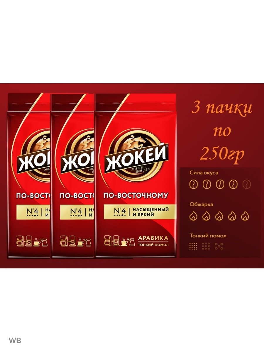 Кофе молотый Жокей По-восточному, 250 г, 3 уп.