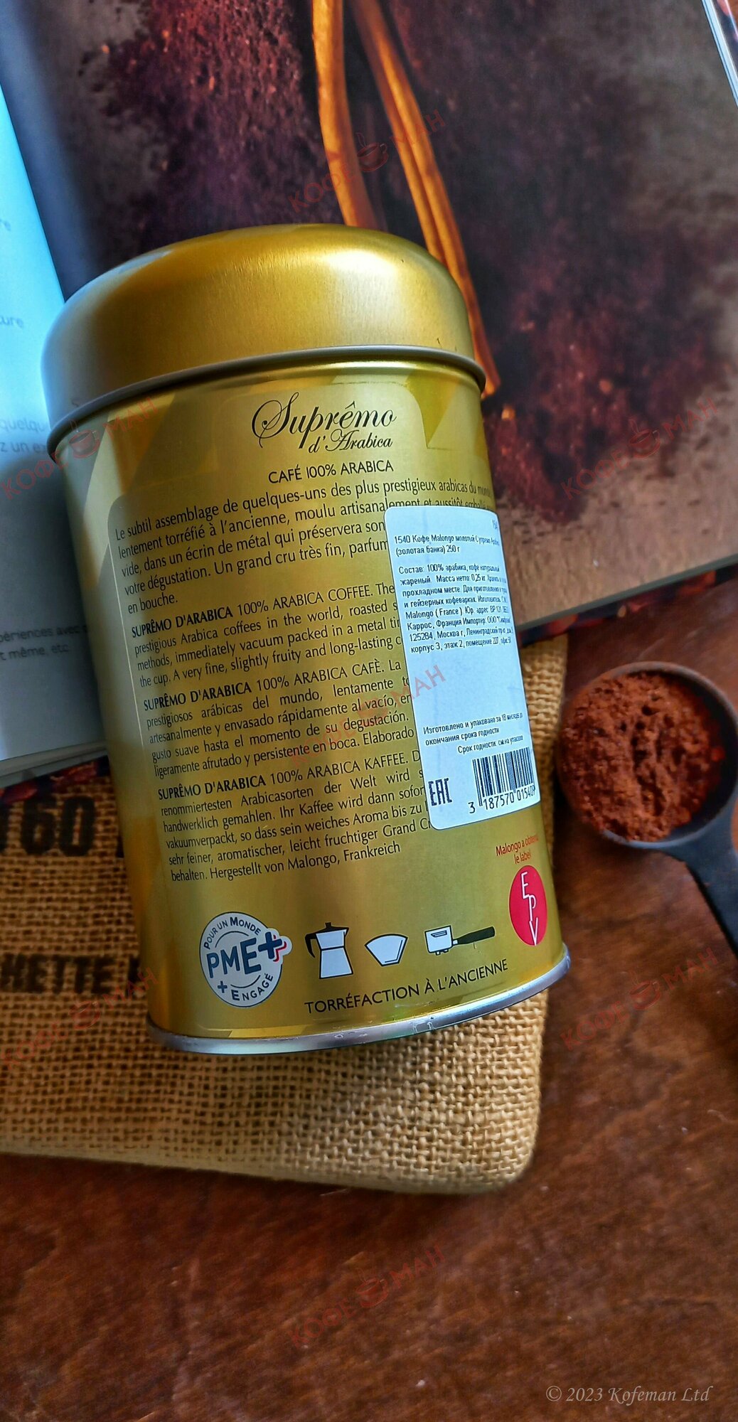 Кофе Malongo молотый Супремо Арабика (золотая банка) 250 г