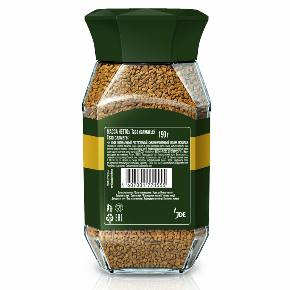 Кофе растворимый Jacobs Monarch сублимированный, стеклянная банка, 190 г