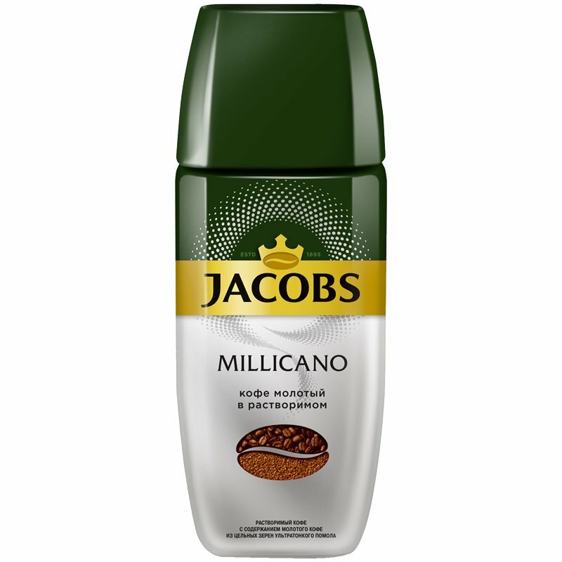 Кофе JACOBS MILLICANO растворимый сублимированный с добавлением жареного молотого кофе 160г