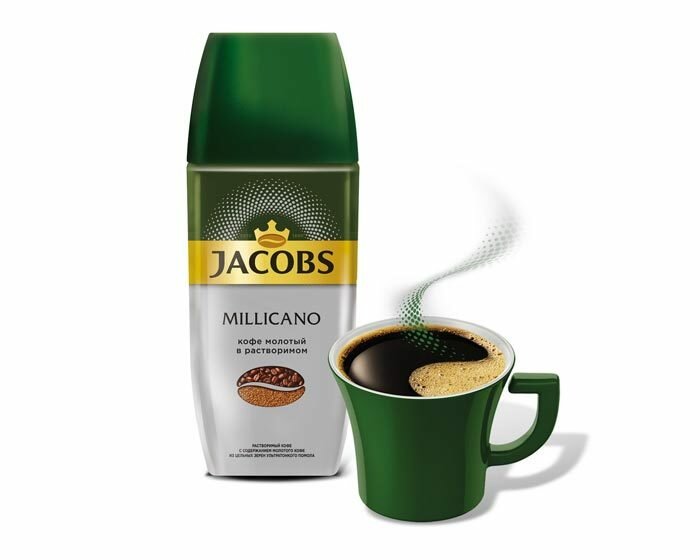 Кофе молотый в растворимом JACOBS "Millicano", сублимированный, 160 г, стеклянная банка, 8052510