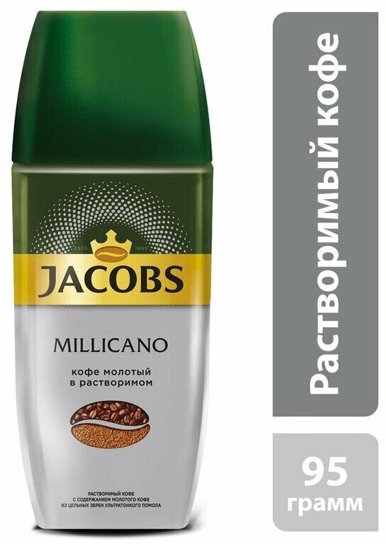 Кофе растворимый Jacobs Millicano с молотым кофе, 90 г стеклянная банка (Якобс)