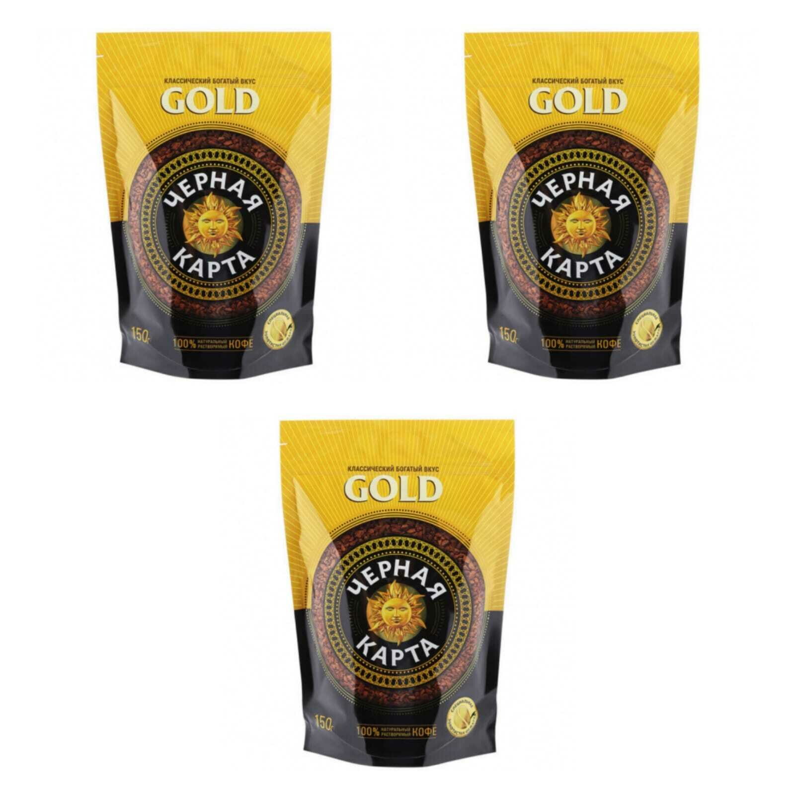 Купить Кофе растворимый Черная карта Gold, пакет 150 г, 3 шт