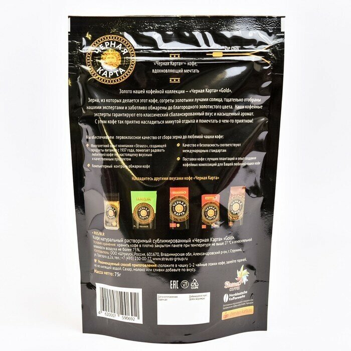 Кофе растворимый Черная карта Gold, пакет, 75 г