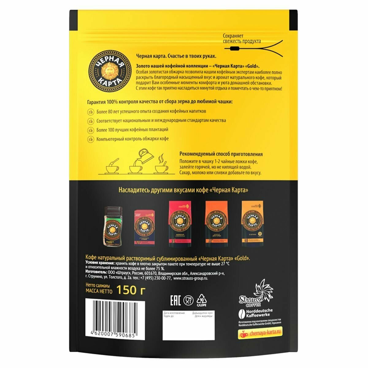 Кофе растворимый Черная Карта Gold сублимированный, пакет, 150 г