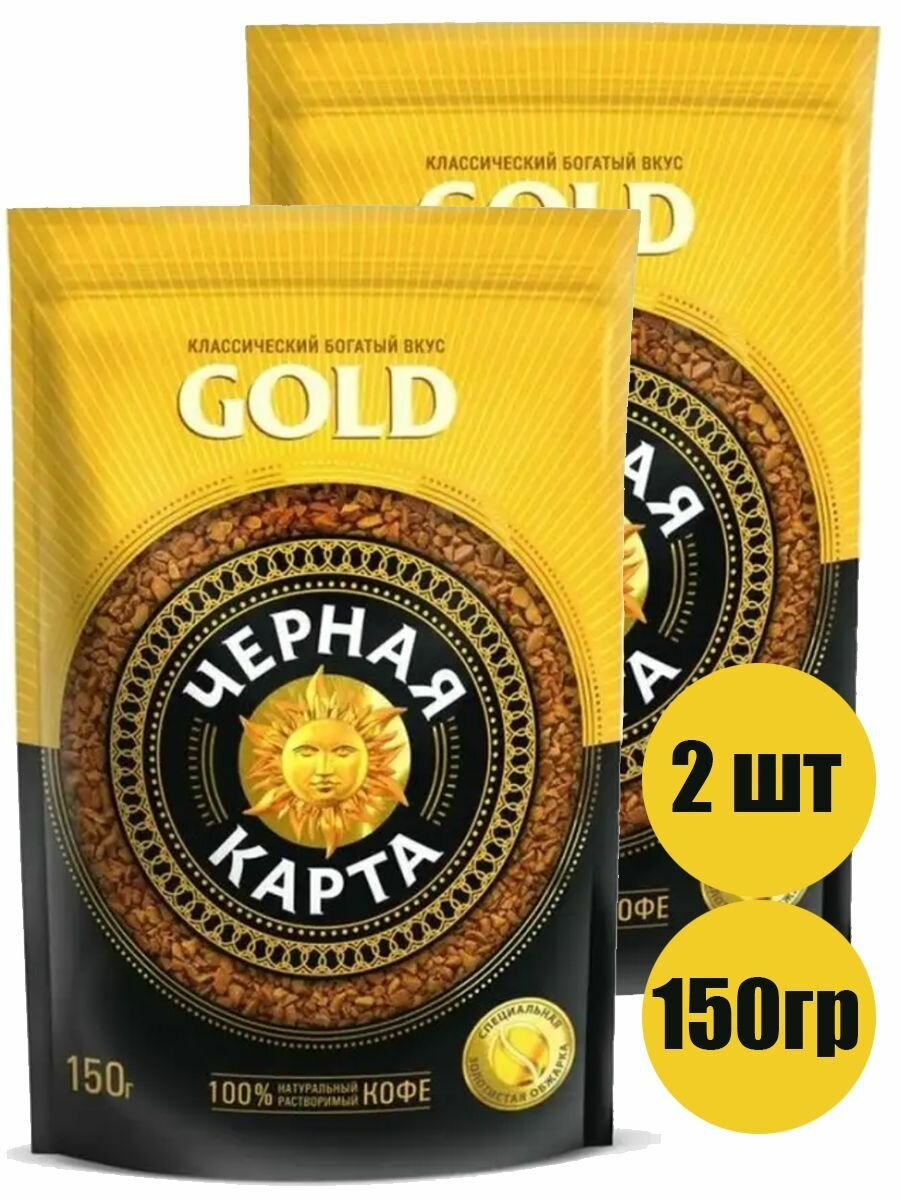 Кофе растворимый Черная Карта Gold 150 г (пакет) ,2 уп.