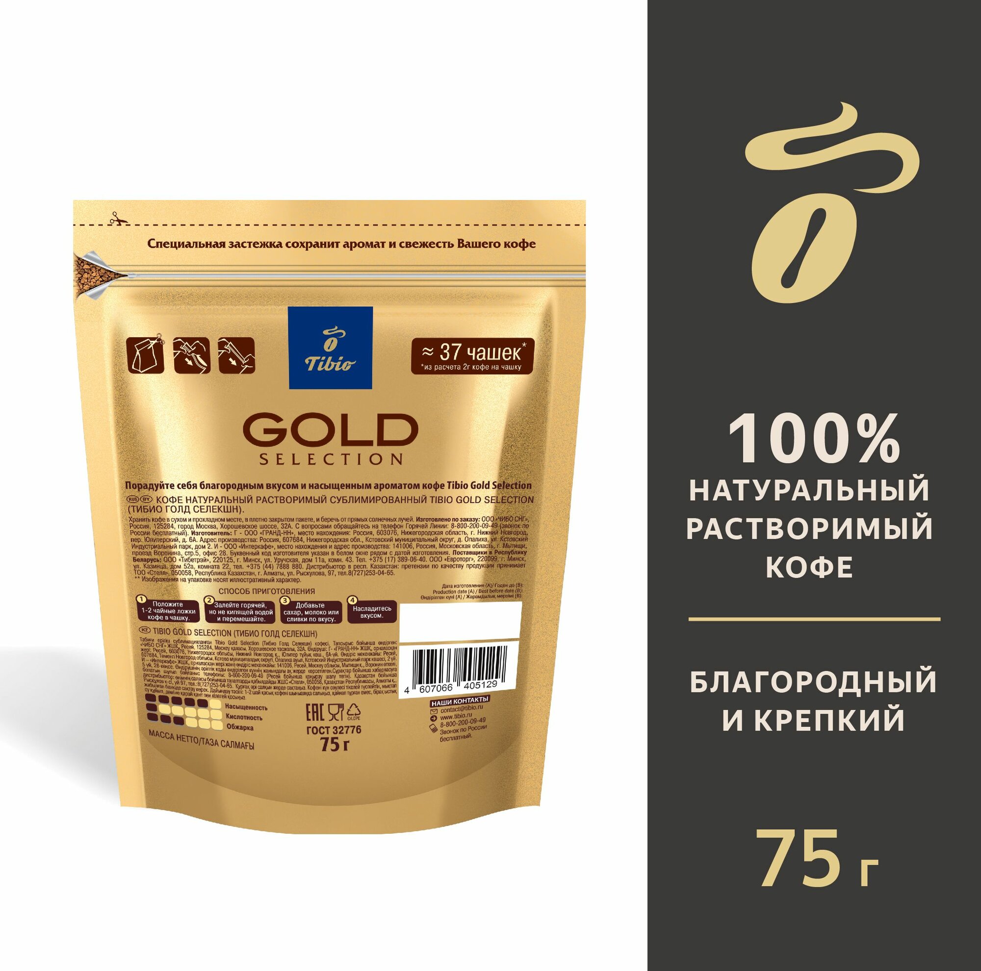 Кофе растворимый Tibio Gold Selection , 75 г