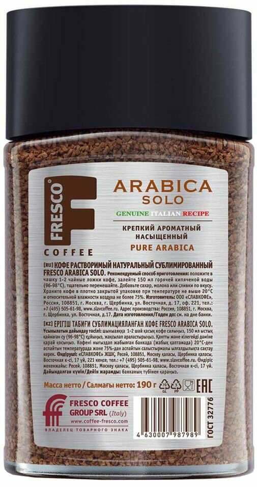 Кофе растворимый FRESCO Arabica Solo натуральный сублимированный, 190г