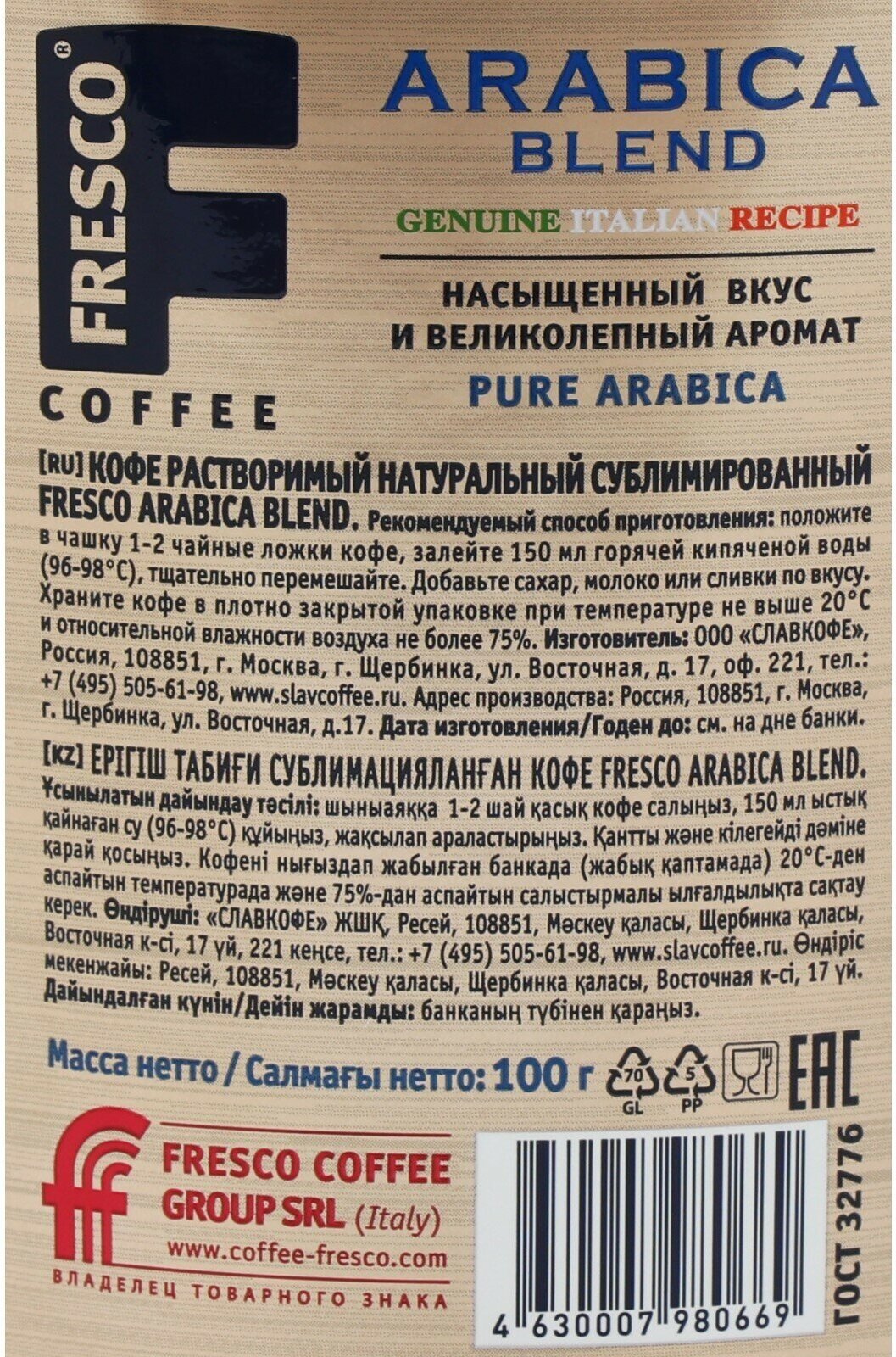 Кофе растворимый FRESCO "Arabica Blend", сублимированный, 100 г, стеклянная банка