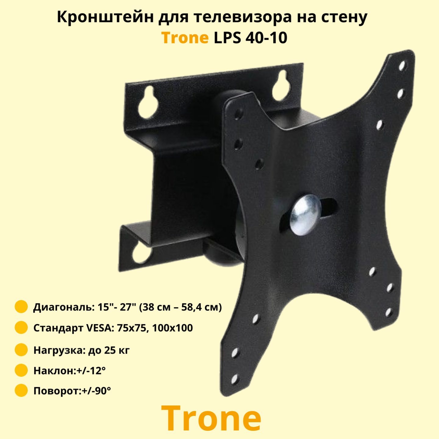 Кронштейн для телевизора на стену наклонно-поворотный с диагональю 15"-27" Trone LPS 40-10,черный