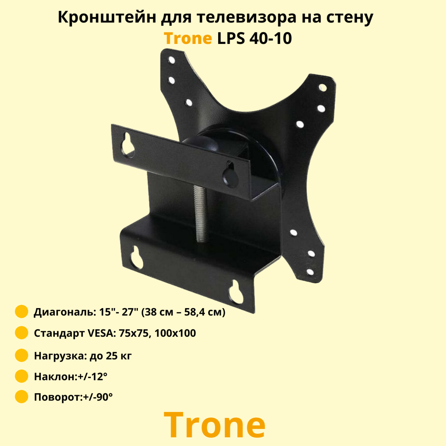Кронштейн Trone LPS 40-10, для ТВ, наклонно-пов, 15"-23", до 25 кг, 83 мм, чёрный