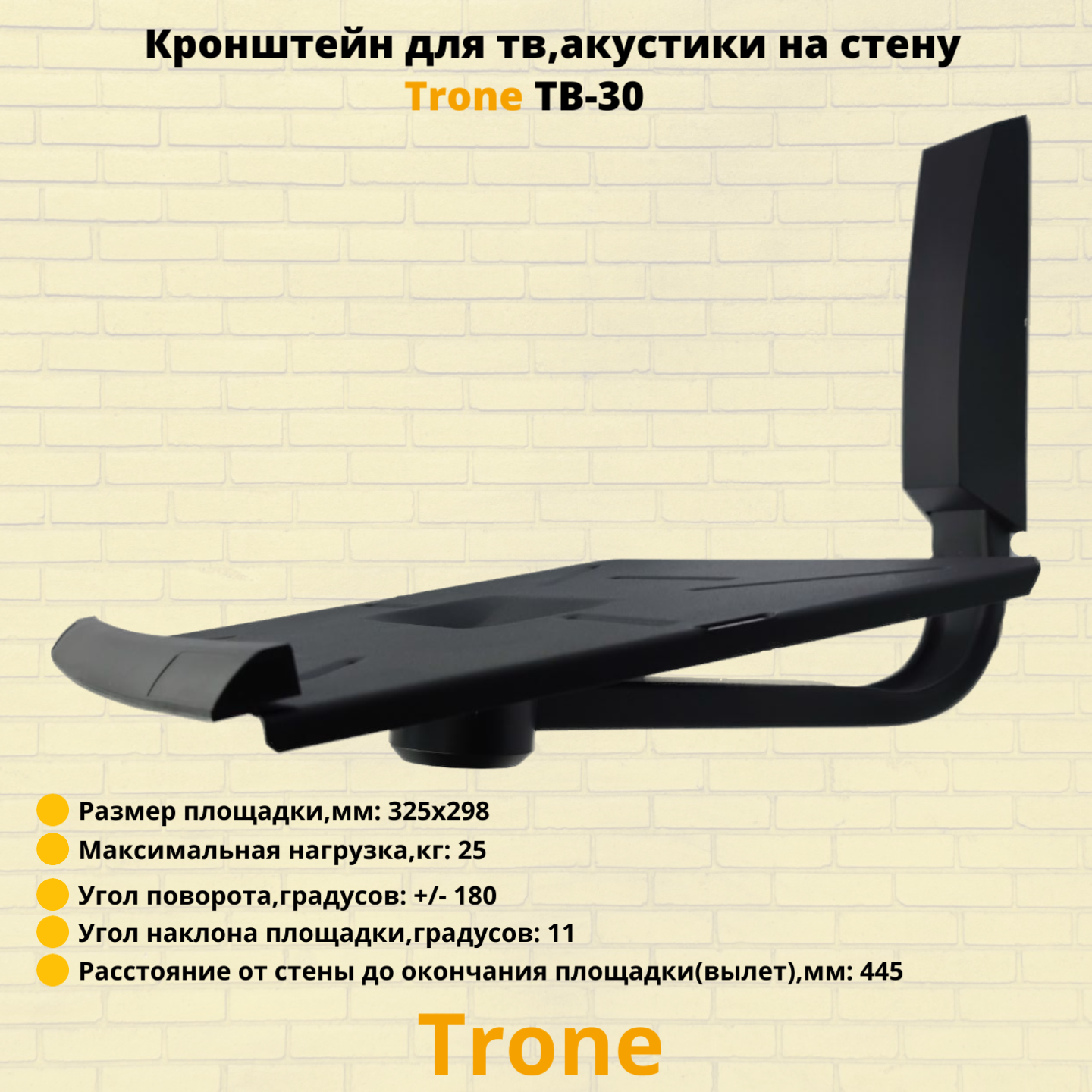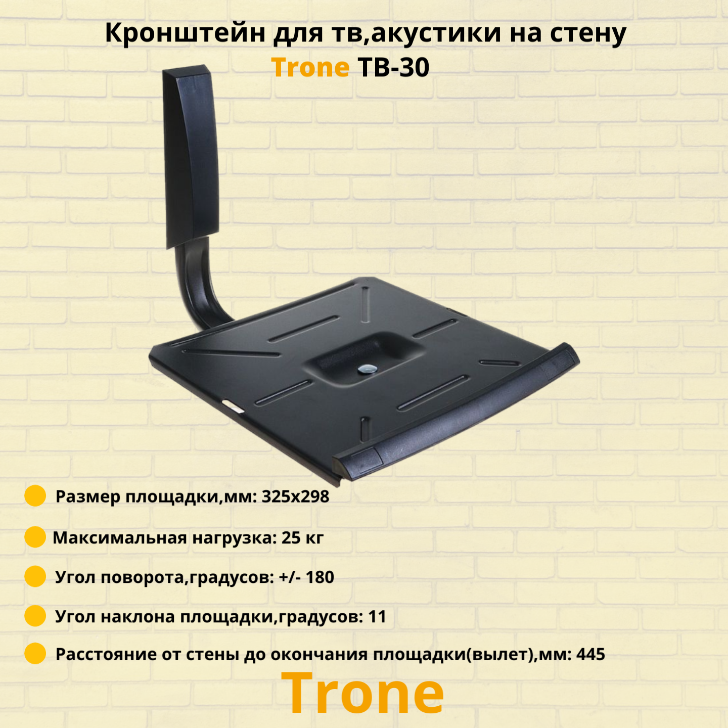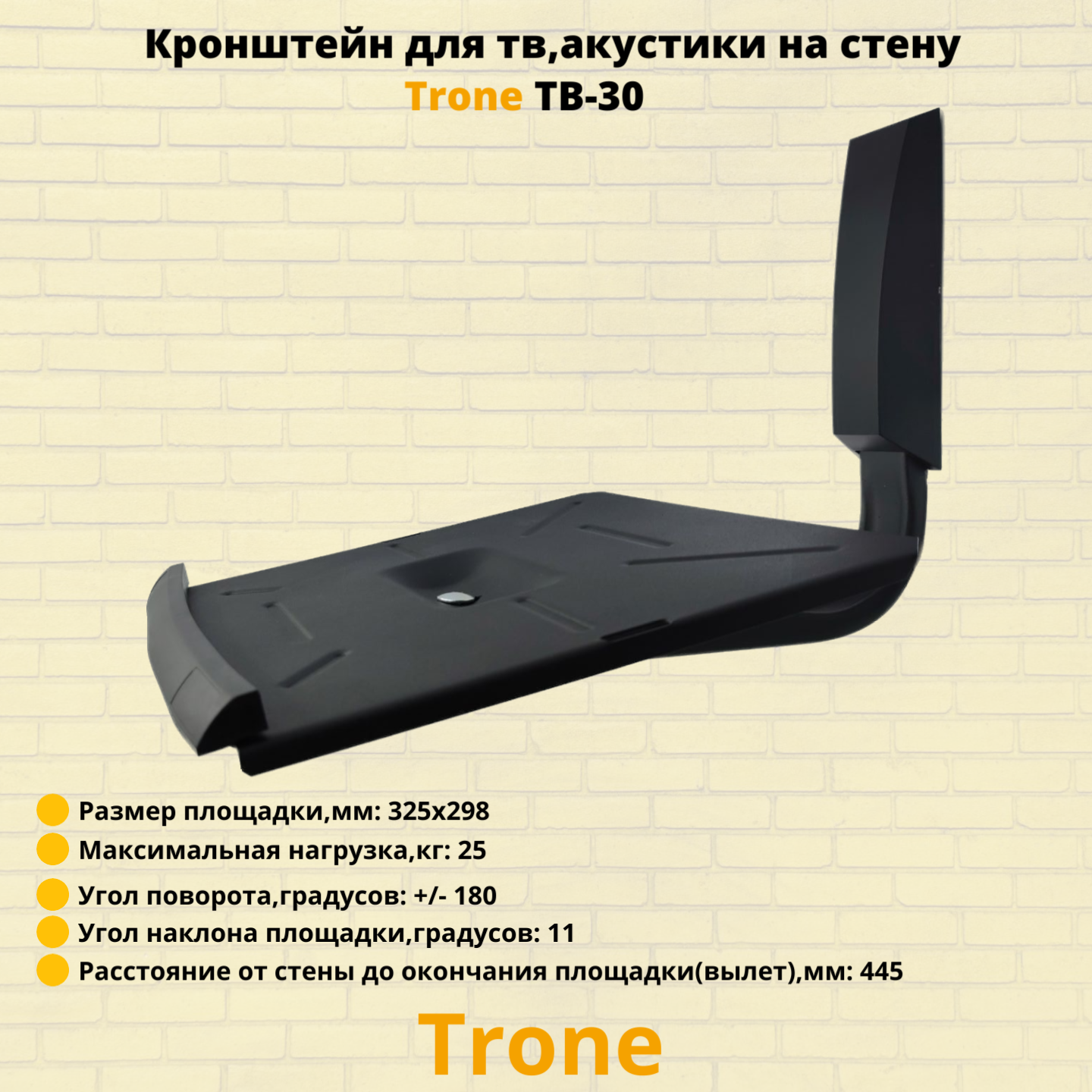 Полка Trone ТВ 30, для аудио-видео аппаратуры, до 25 кг, 298х325 мм, черная
