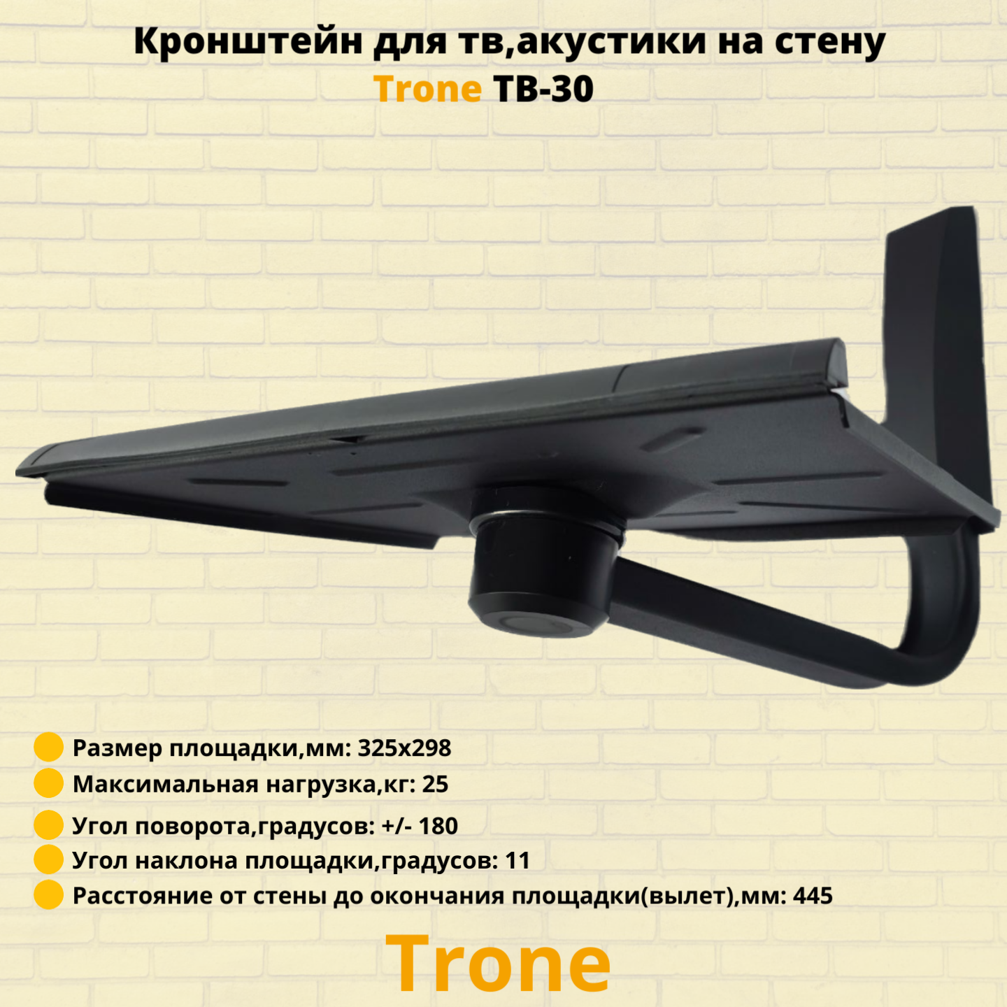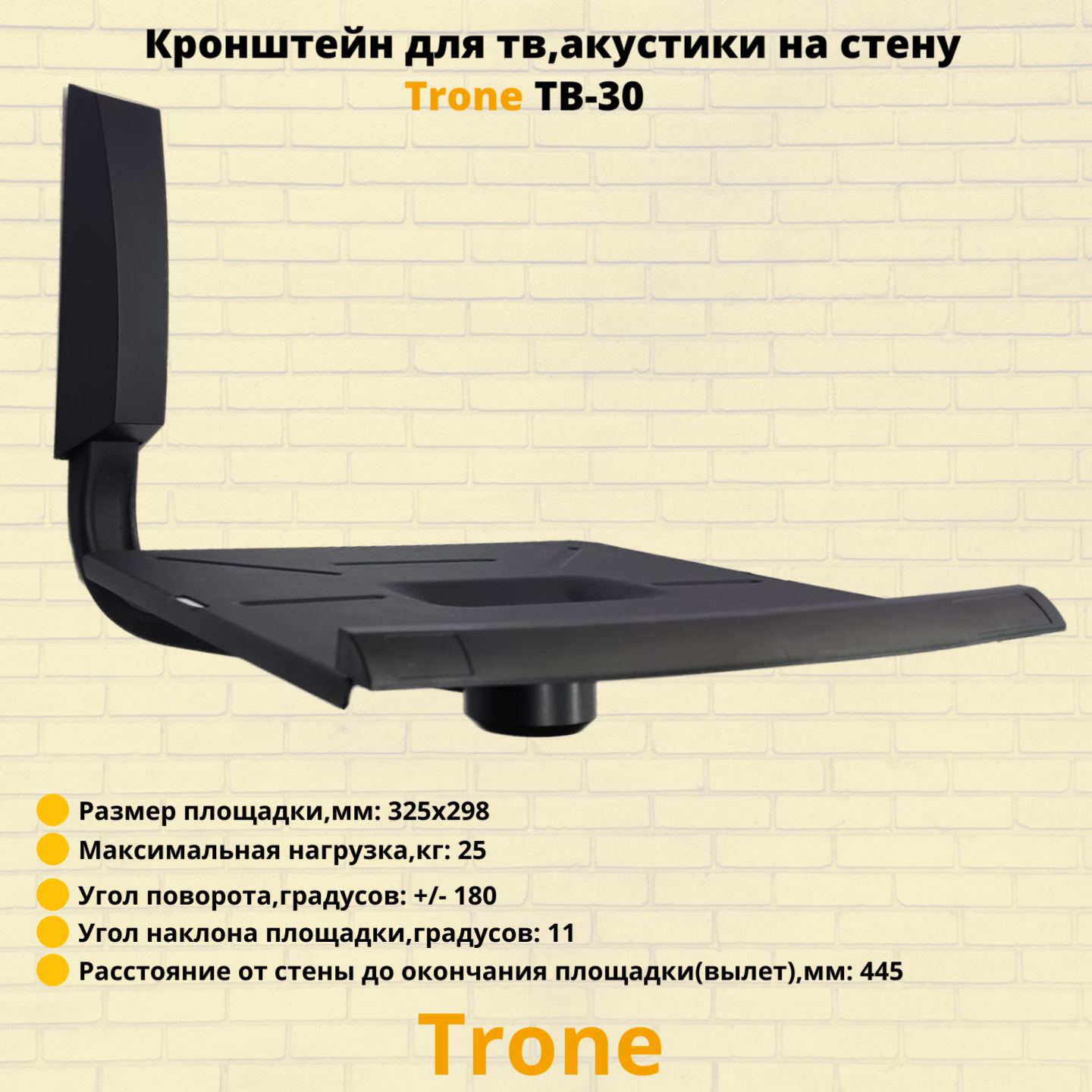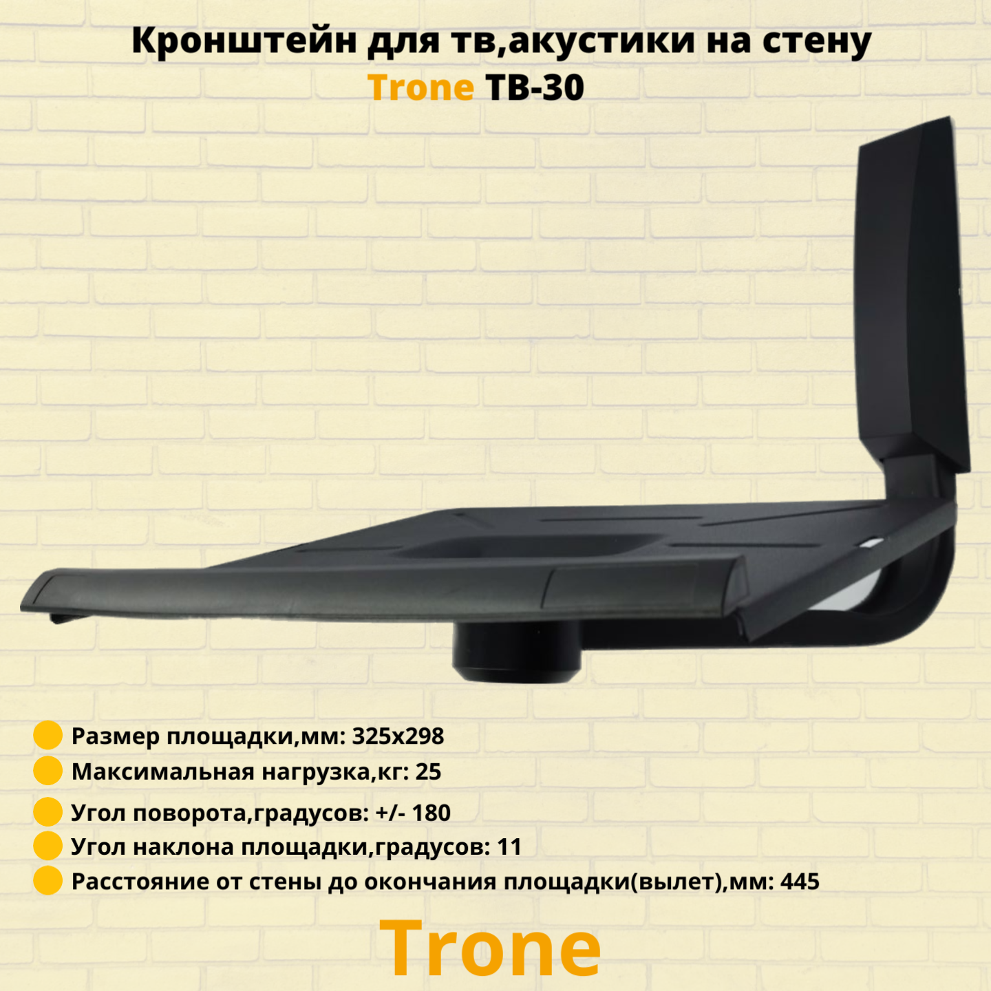 Полка Trone ТВ 30, для аудио-видео аппаратуры, до 25 кг, 298х325 мм, черная