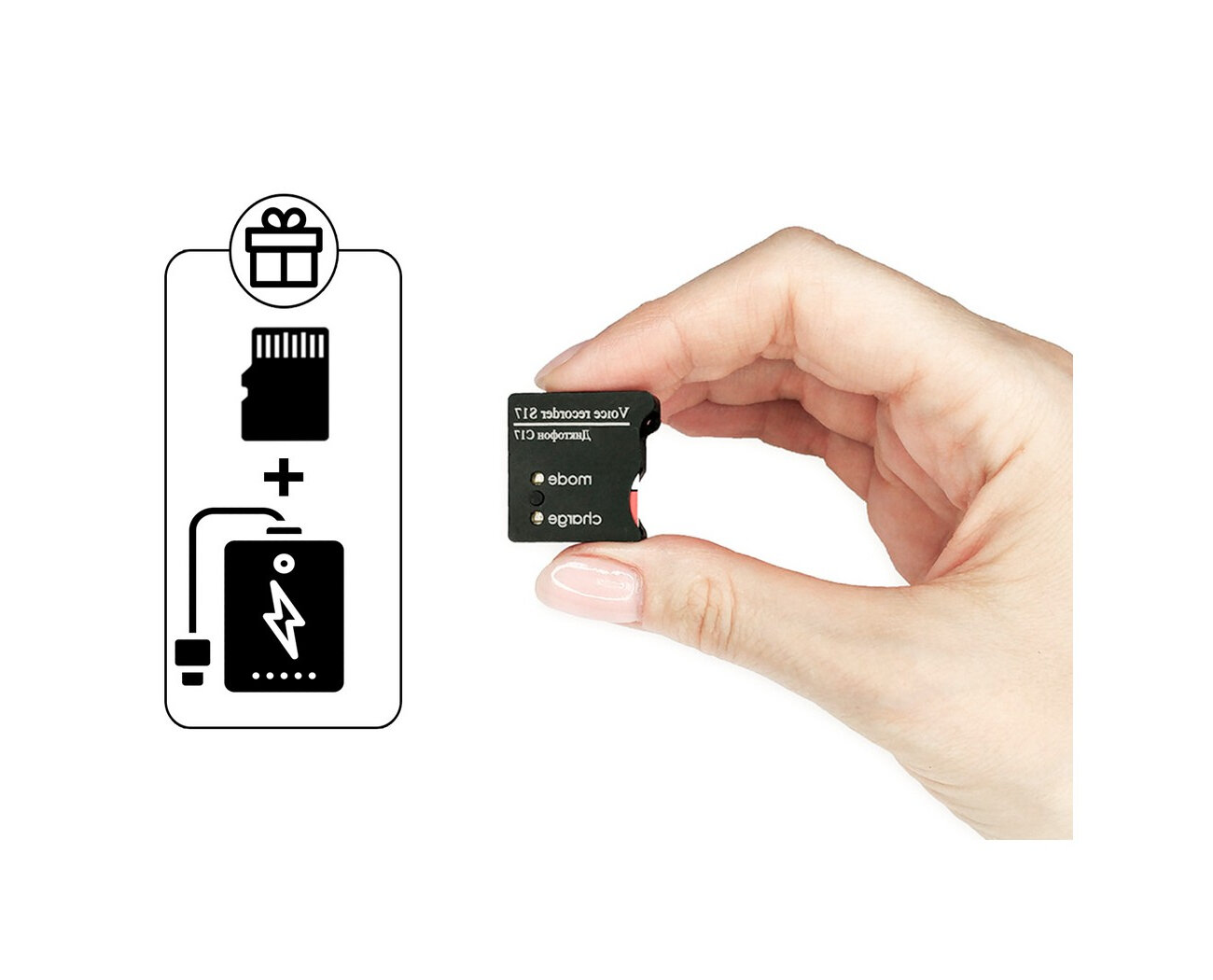 Мини диктофон для записи разговоров Сорока-17-MicroSD (S18983SOR) + 2 подарка (Power Bank 10000 mAh + SD карта 32ГБ) - циклическая запись, шифровани