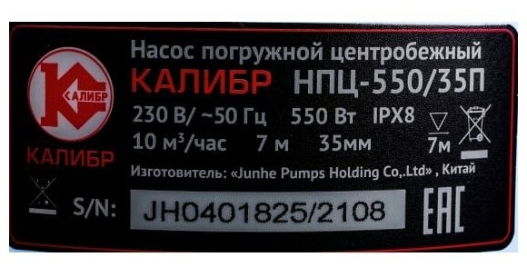 Насос погружной Калибр Нпц-550/35п .