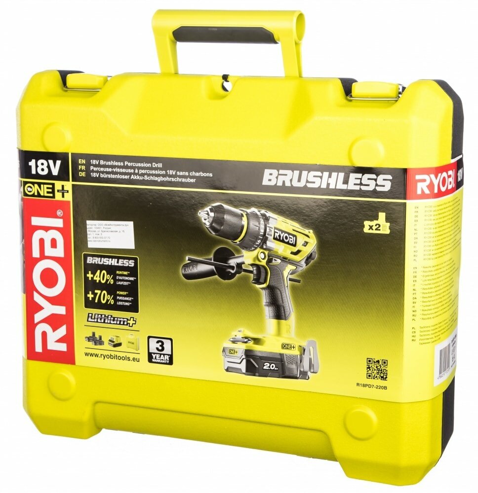 Ryobi ONE+ Бесщеточная ударная дрель шуруповерт R18PD7-220B 5133004295