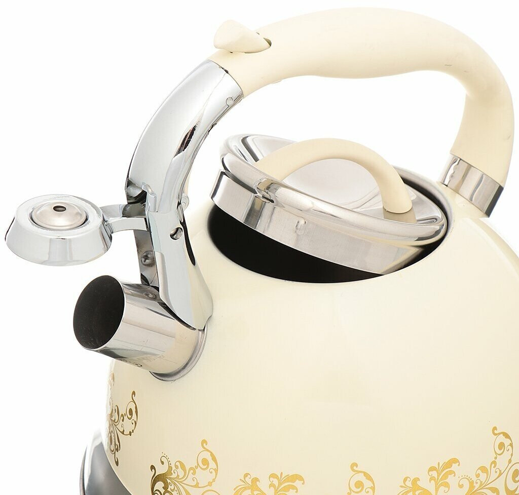 Чайник со свистком 3 л для плиты Vetta "Золотая вязь", нержавеющая сталь, бежевый, индукция