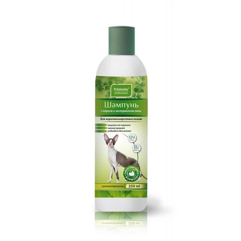 Шампунь PCHELODAR с пергой и хвоей для короткошерстных кошек (250 мл)