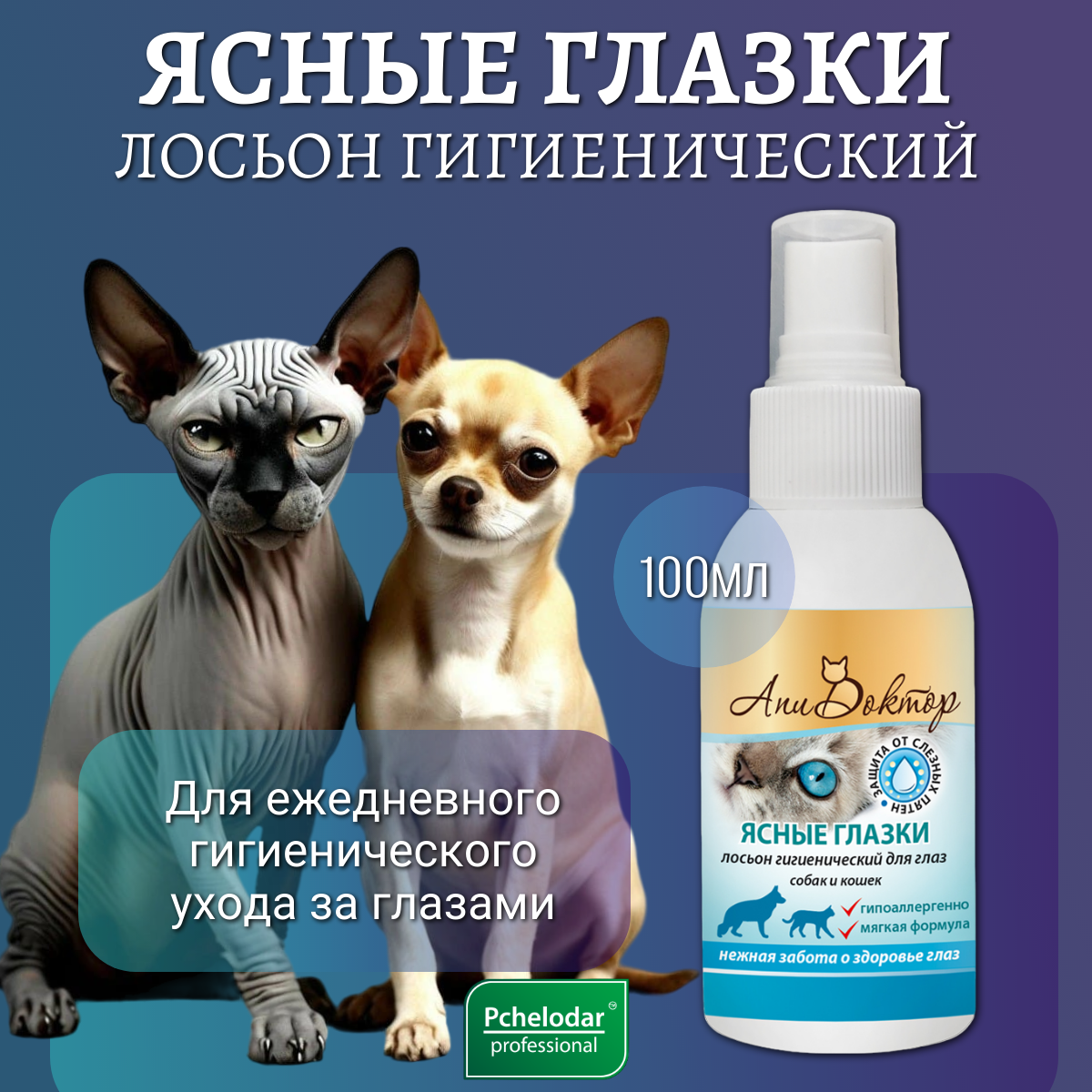 Лосьон для кошек и собак PCHELODAR Ясные глазки для глаз (100 мл)