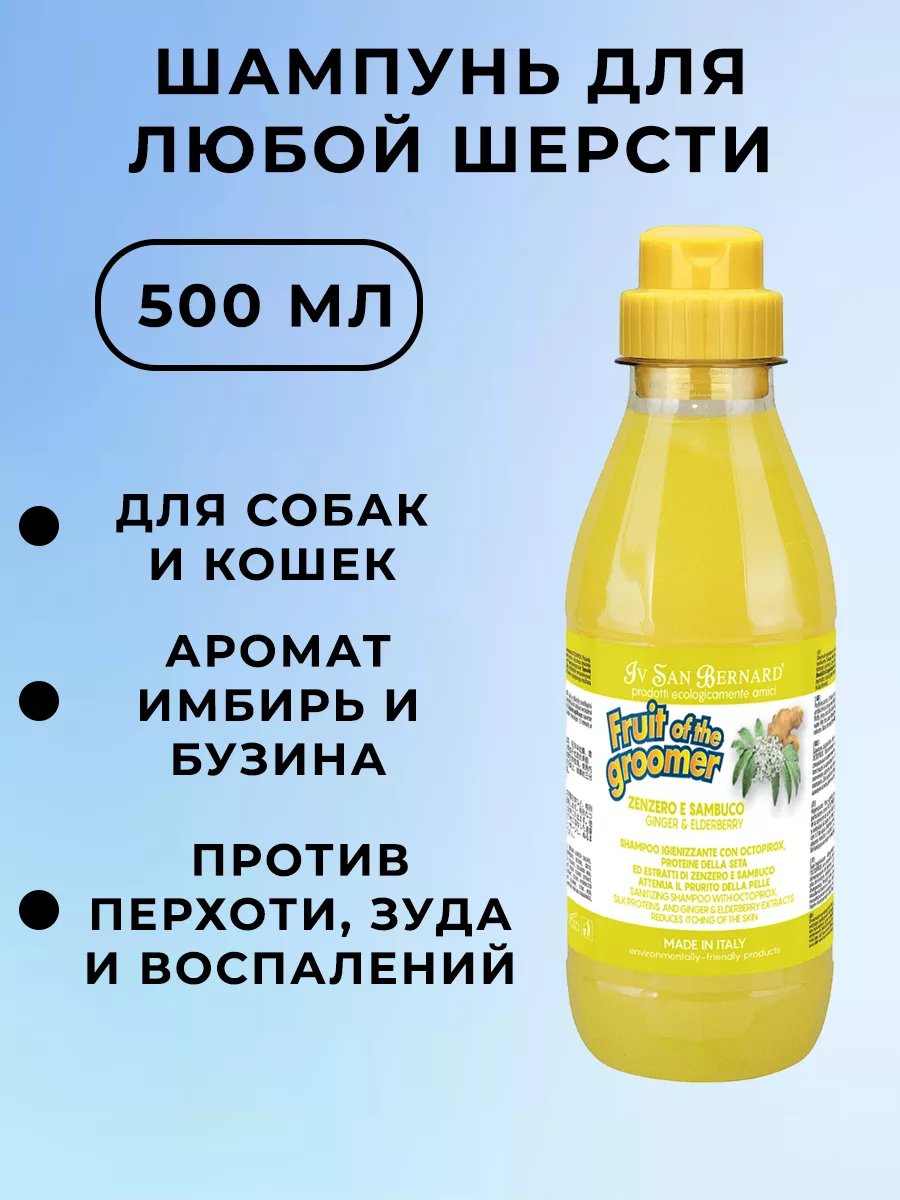 Шампунь -шампунь Iv San Bernard Fruit of the Groomer Ginger and Elderberry против раздражений и перхоти для кошек и собак , 500 мл , 550 г