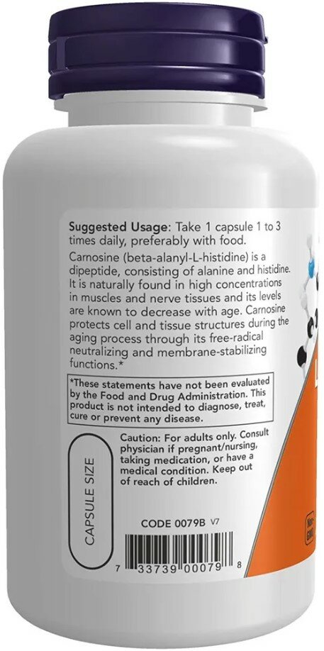 NOW CARNOSIN - Антиоксидантная аминокислота 500 мг, 100 капсул