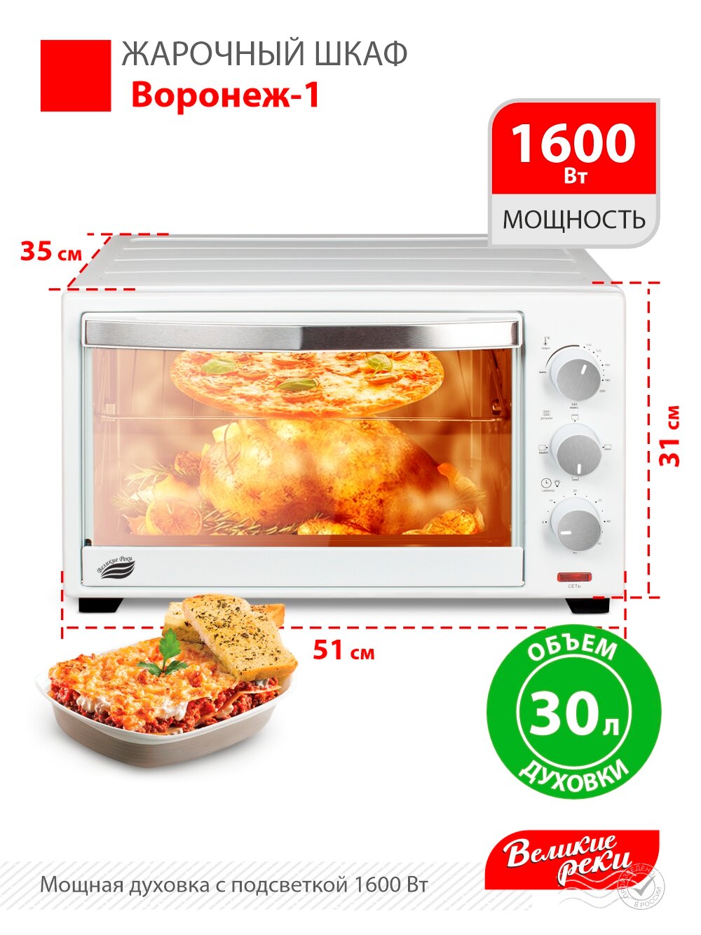 Электрическая духовка Великие Реки Воронеж-1 белый,1600 Вт,30 л,таймер 60 мин,выбор работы ТЭНов,бел интересное: