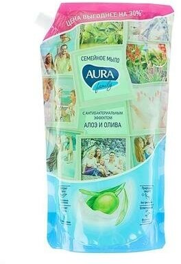 Аура / Aura Family - Жидкое мыло Алоэ и олива с антибактериальным эффектом в дой паке 1 л