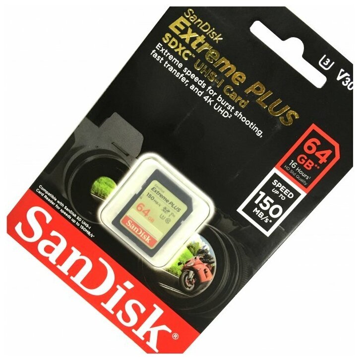 SDXC 64GB SanDisk Class 10 Extreme Plus V30 UHS-I U3 (150 Mb/s) интересное: