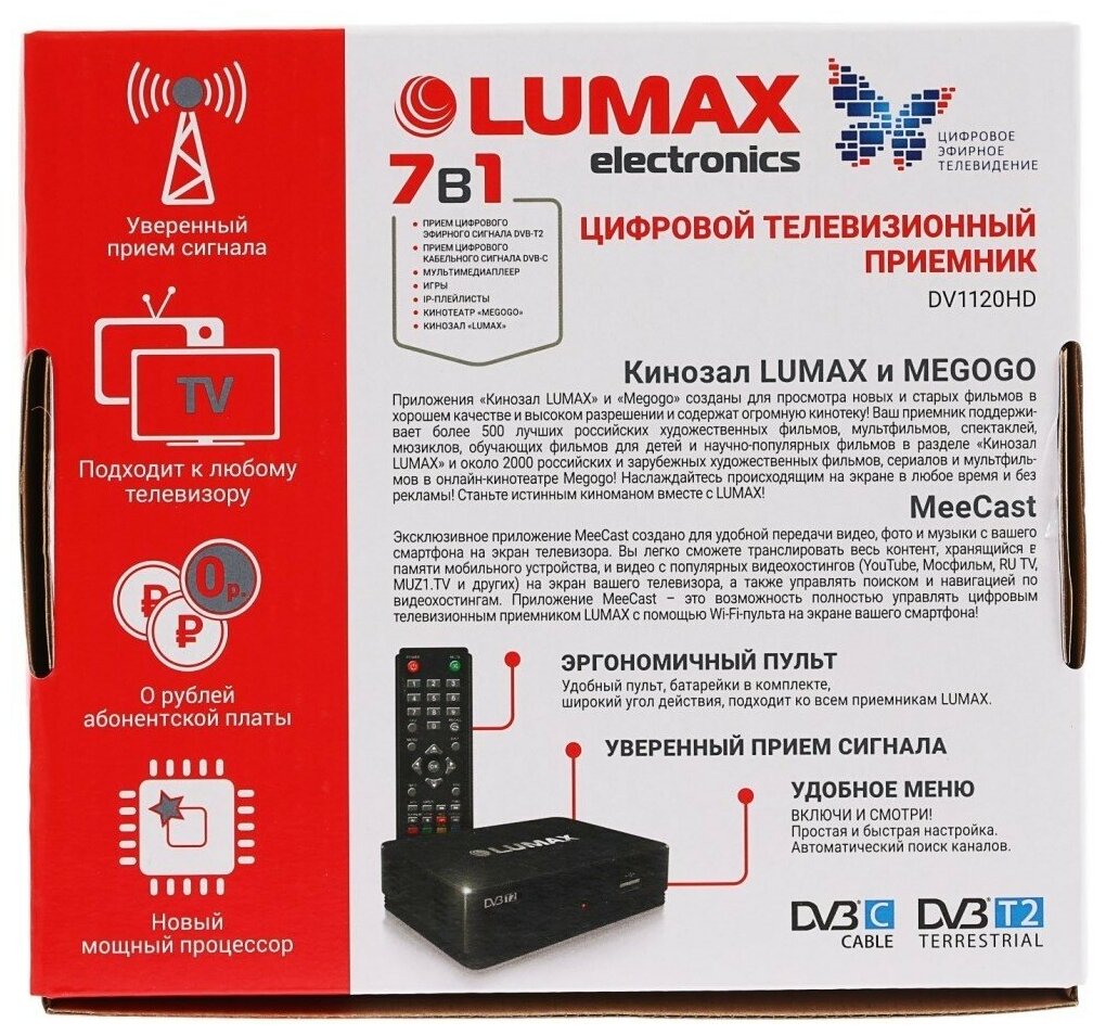 Ниже Вы можете прочитать отзывы на Тюнер Lumax DVB-T2 DV1120HD Цифровой телевизионный приемник, ознакомится с подробными характеристиками, посмотреть интересные обзоры и фотографии на Тюнер Lumax DVB-T2 DV1120HD Цифровой телевизионный приемник.