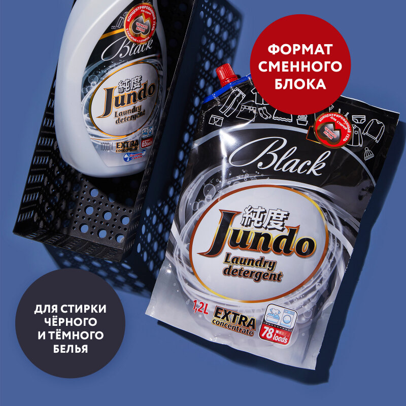Jundo Концентрированный гель для стирки черного белья 1,2 л на 78 стирок в мягкой упаковке