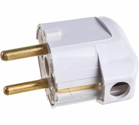 Вилка Bylectrica В16-242 16А 250В (АБС пластик, латунь, угл., земля, белая) Минск