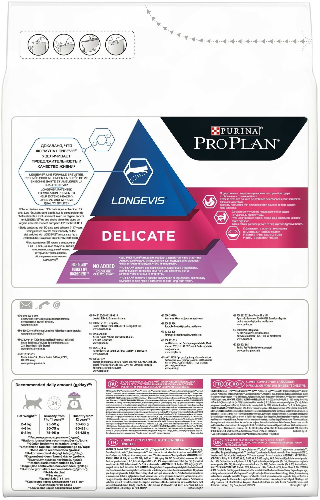 Pro Plan Delicate Senior корм для кошек старше 7 лет с чувствительным пищеварением Индейка, 3 кг.