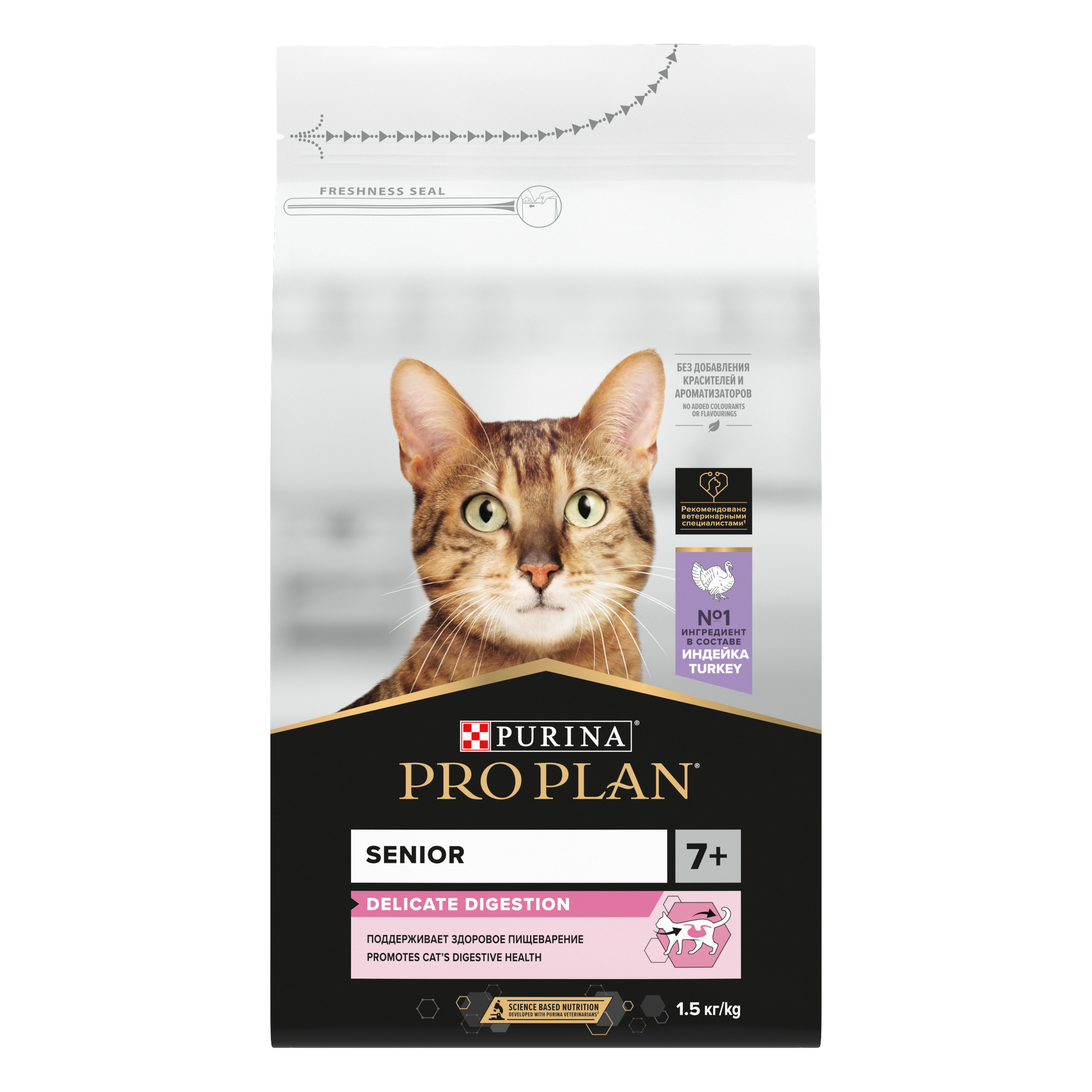 Сухой корм Pro Plan для кошек 7+ с чувствительным пищеварением, индейка, 1,5 кг Pro Plan 8095462 .