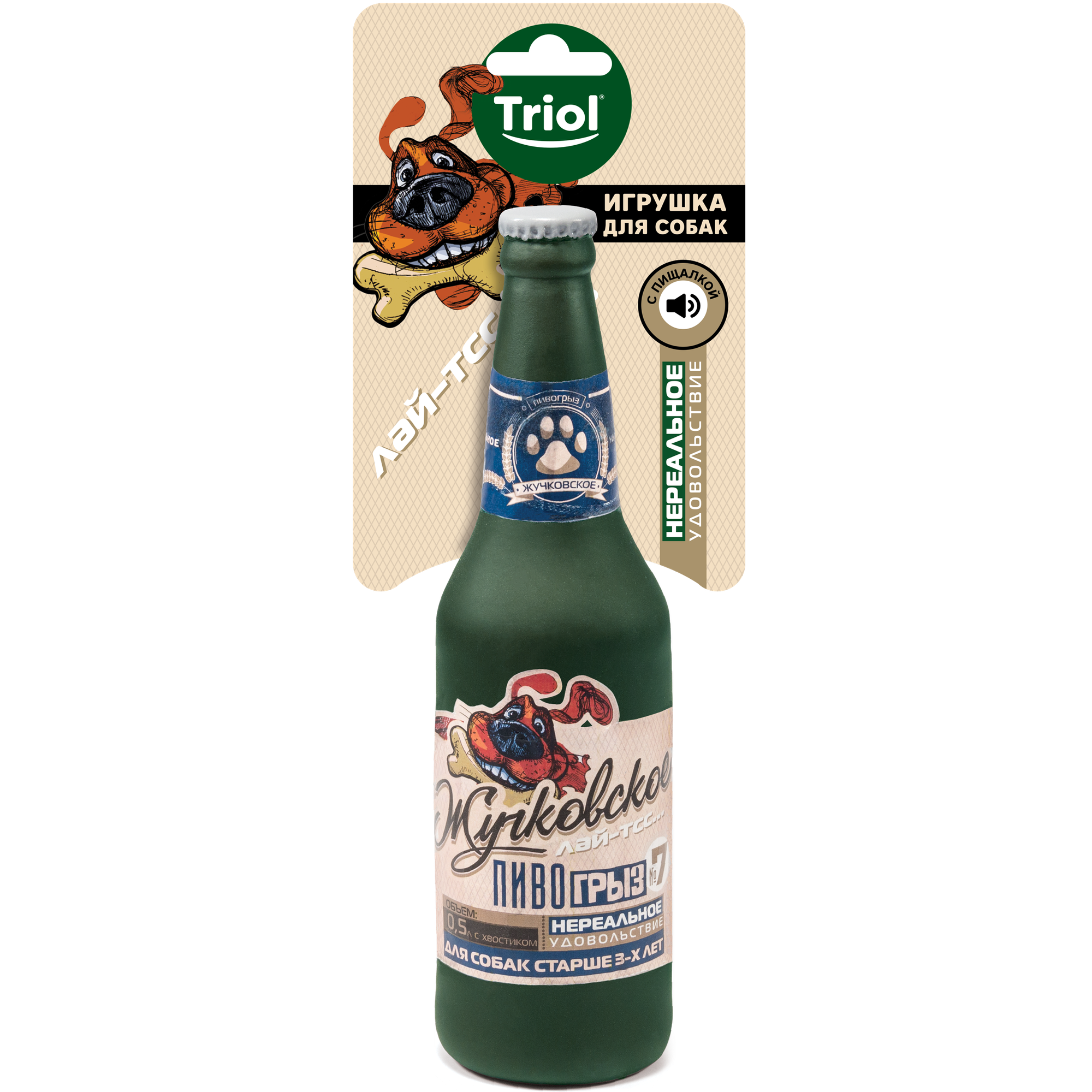 Triol Игрушка "Бутылка - Жучковское" с пищалкой, для собак, винил, 24 см