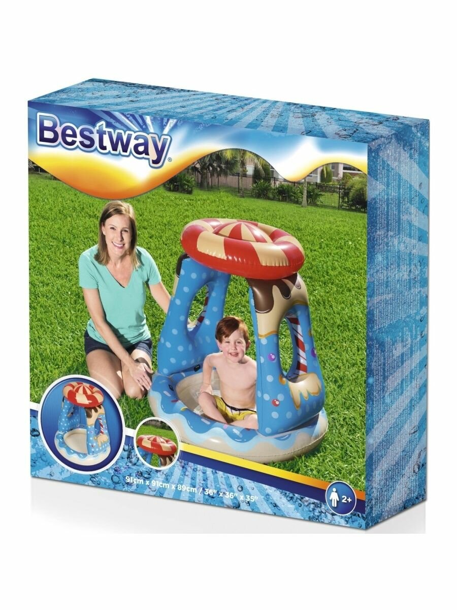 Купить Детский надувной бассейн с навесом Bestway 52270 Конфетка (91х91х89см)