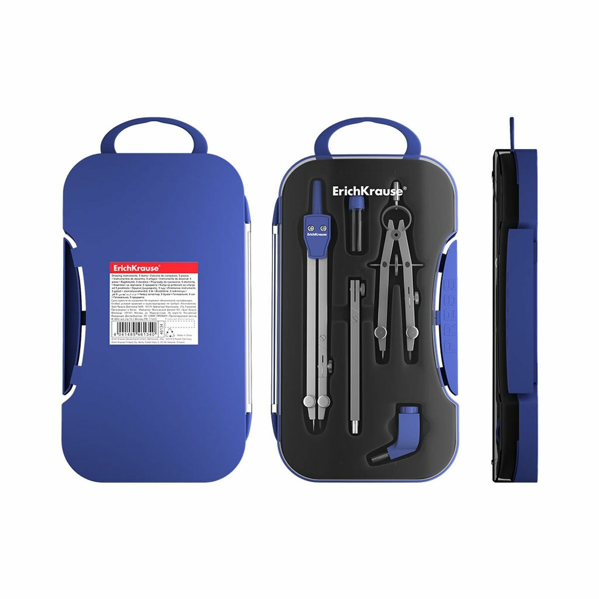 Готовальня 5 предметов, циркуль 140мм, University, пластиковый футляр, синий ErichKrause (46134)