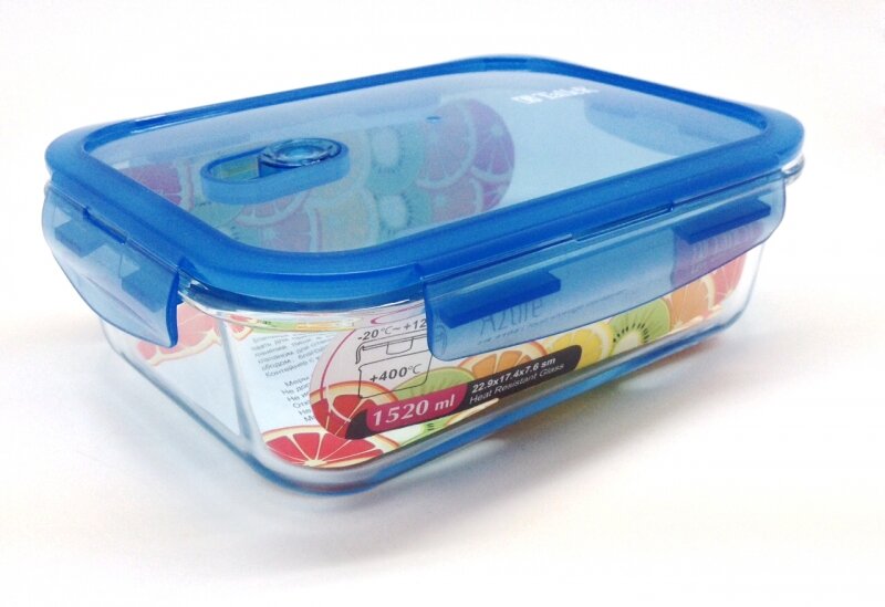 Контейнер объемом 1500 мл из жаропрочного стекла с герметичной крышкой из пластика