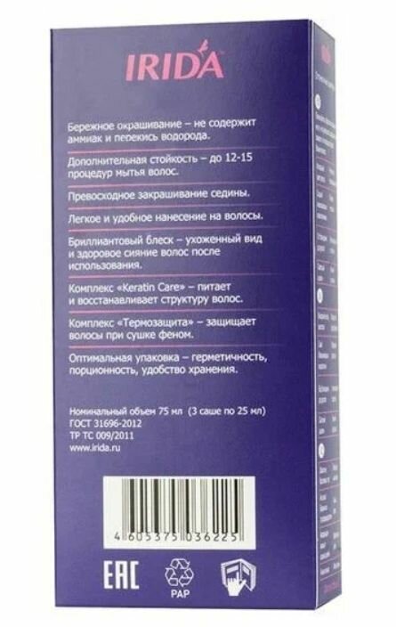 IRIDA Шампунь оттеночный для волос, Фиолетовый, 75 мл