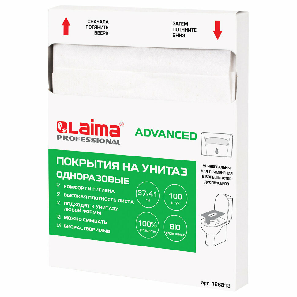 Покрытия на унитаз LAIMA, ADVANCED, 1/4 сложения, комплект 100 шт., 37х41 см, 128813 (цена за 1 ед.товара)
