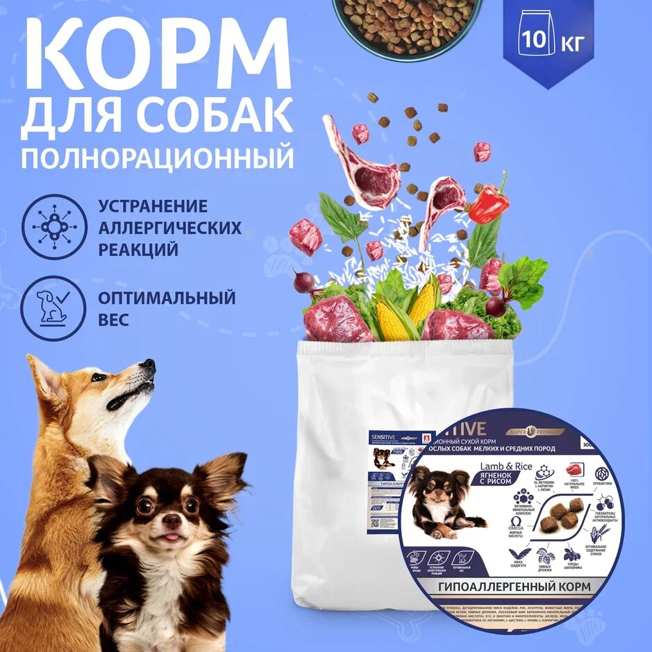 Корм сухой Зоогурман для собак малых и средних пород Sensitive- Гипоаллергенный для собак, склонных к аллергии,полнорационный Ягненок с рисом 10 кг