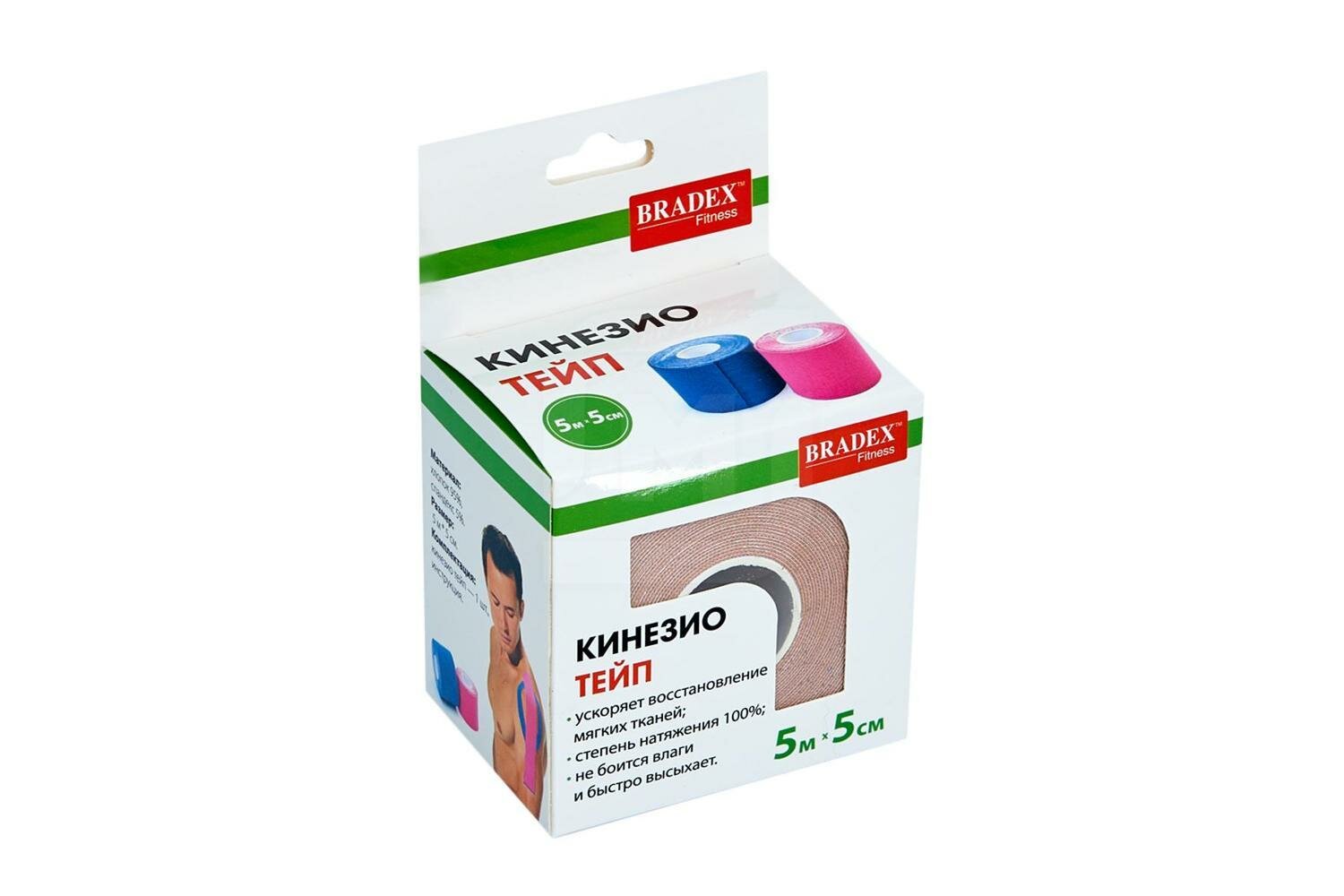 Кинезио тейп BRADEX 5 м х 5 см, бежевый