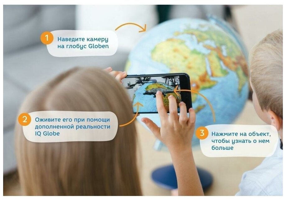 | Плюсы: | Глобус в наборе с очками VR. Приложение установилось легко и быстро, всей семье понравилось использовать данную опцию |