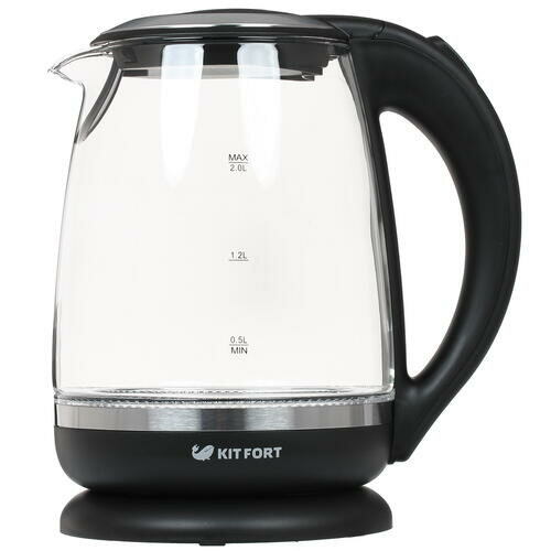 Чайник электрический Kitfort KT-655, стекло, 1.5 л, 2200 Вт, чёрно-серебристый