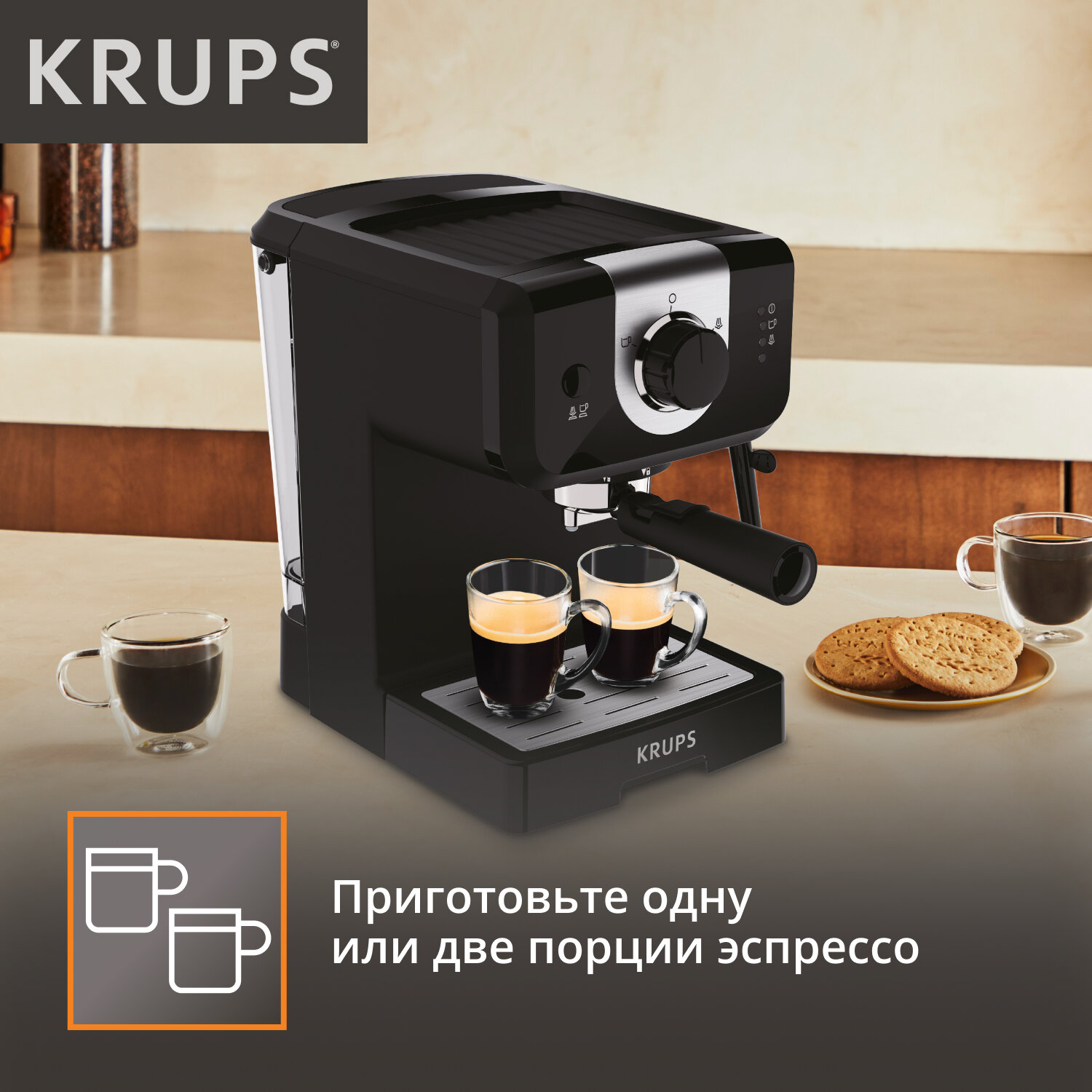 Купить Кофеварка рожковая Krups Opio XP320830, давление 15 бар, 2 фильтра в комплекте, ручной капучинатор