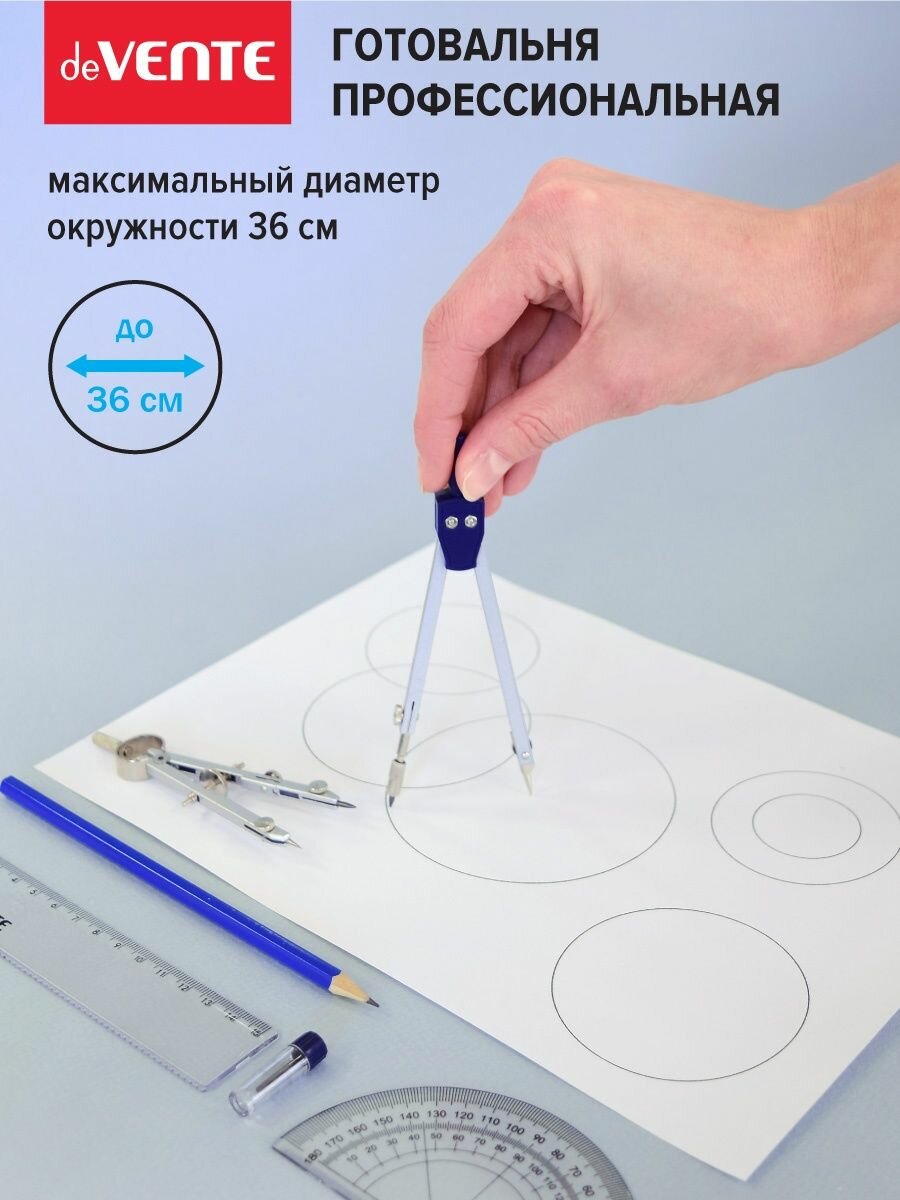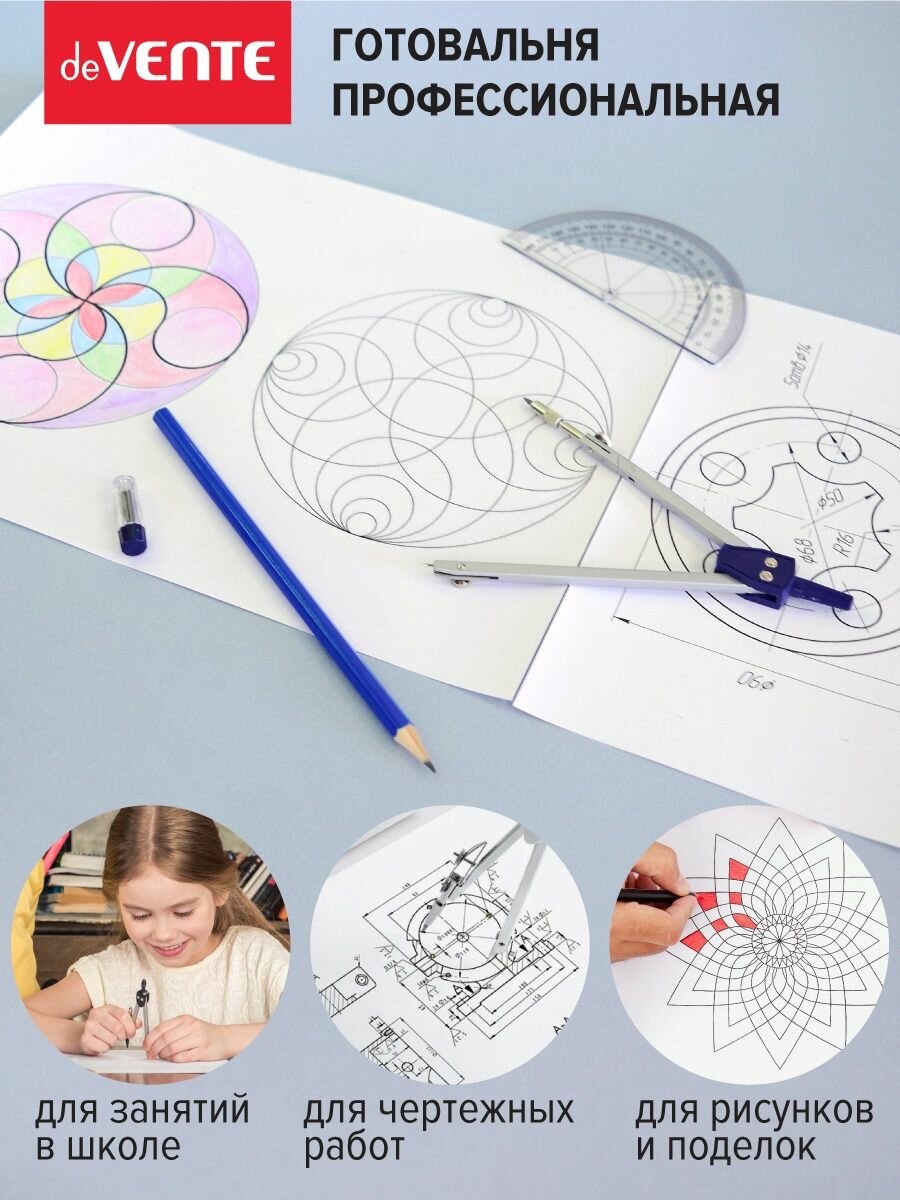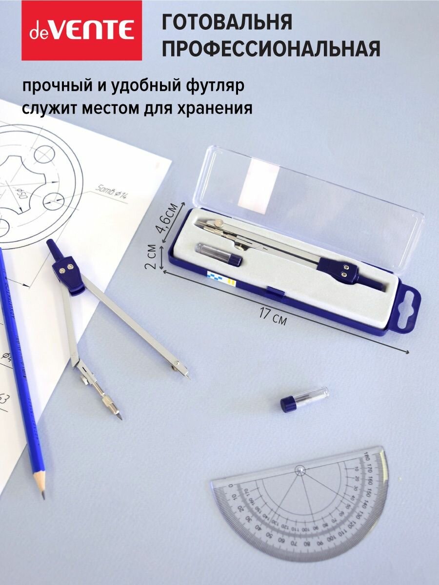 Цена большая за 1 запасной грифель Готовальня deVente, два предмета: циркуль и один (всего один!) запасной стержень. Такой же циркуль был у меня под маркой Erich Krause. |