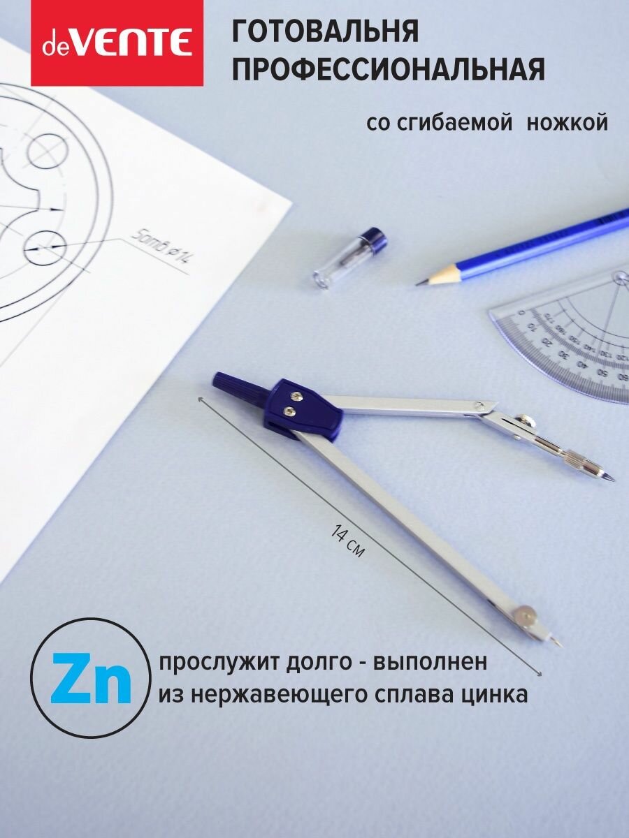 Готовальня 02 предмета циркуль 140мм сгиб ножка темно-синий е/п DEVENTE 5093300 154373 интересное: