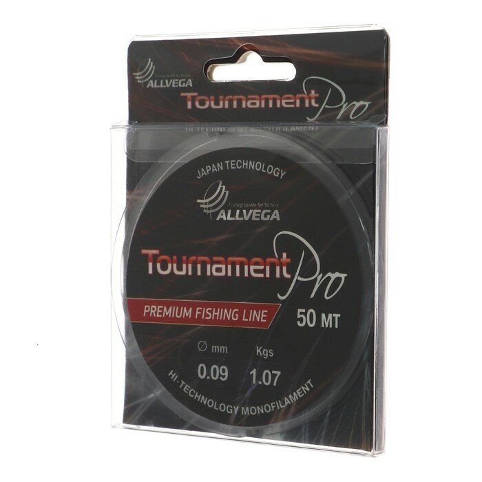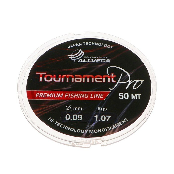 Леска монофильная ALLVEGA Tournament Pro, диаметр 0.09 мм, тест 1.07 кг, 50 м, прозрачная