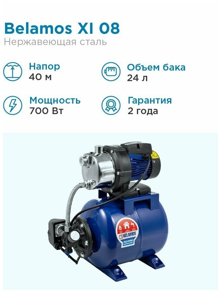 Насосная станция Belamos XI 08 ALL, 800 Вт, 58 л/мин, Н-38 м, нерж.сталь