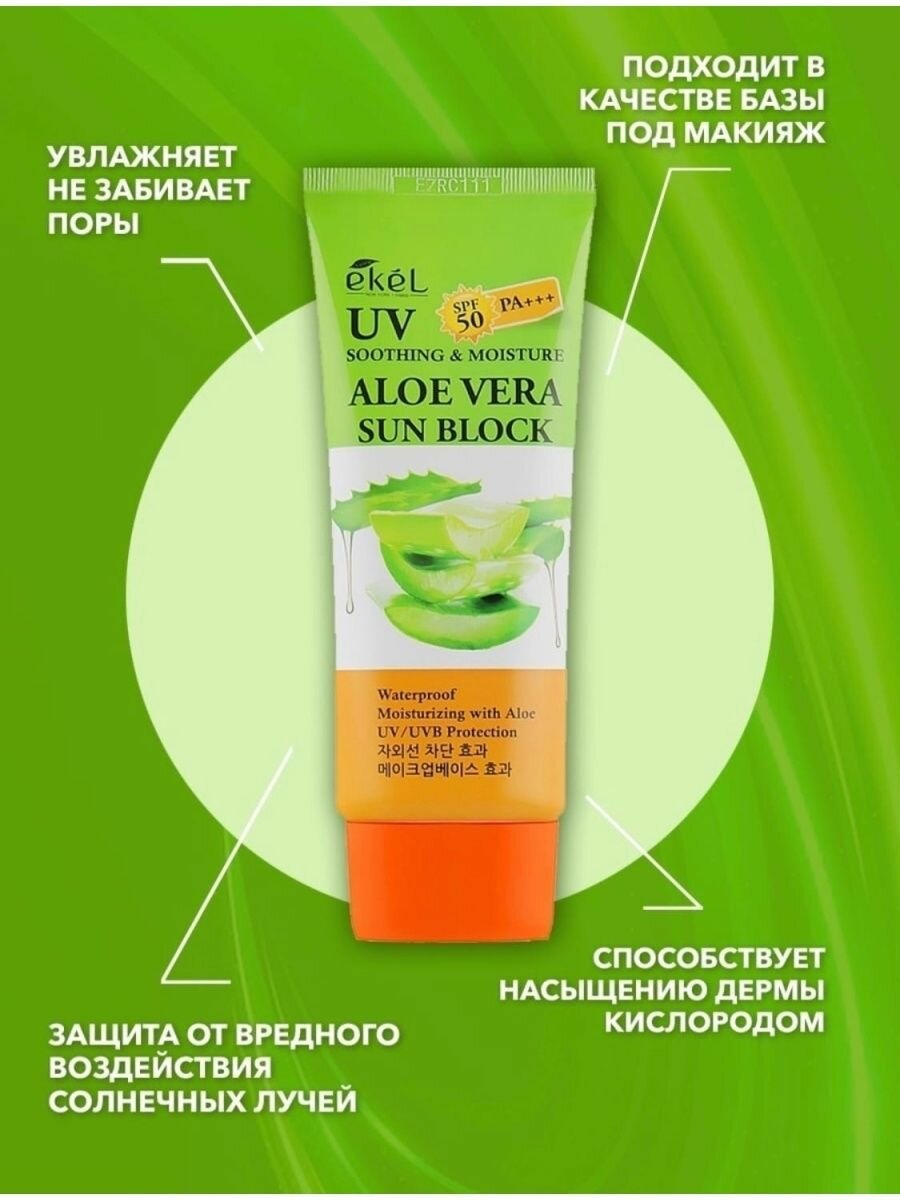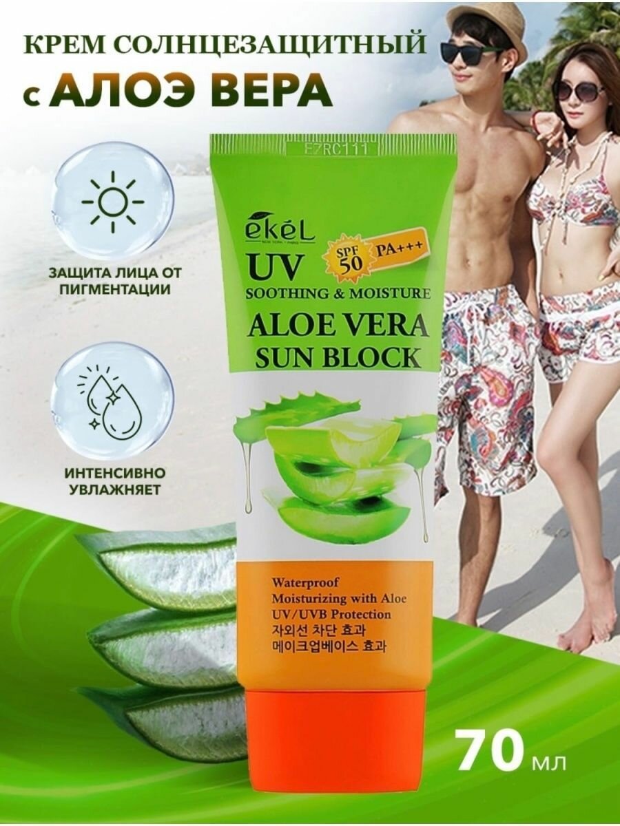 EKEL UV SOOTHING & MOISTURE ALOE VERA SUN BLOCK SPF 50 PA+++ Солнцезащитный крем с алоэ-вера 70мл