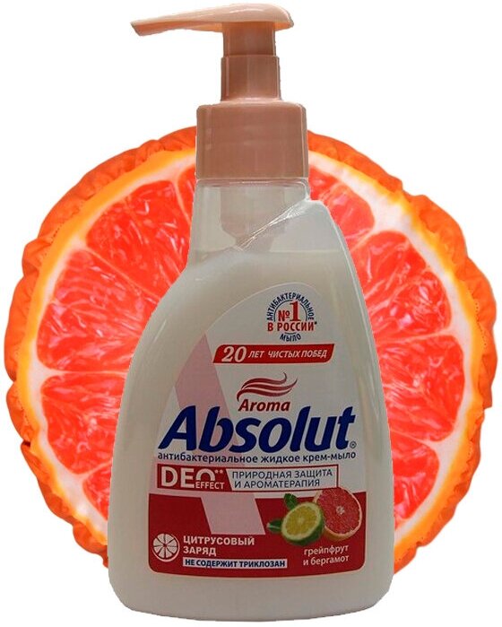 Крем-мыло жидкое (DEO effect) антибактериальное грейпфрут и бергамот ТМ (Абсолют) / бытовая химия/ антибактериальное жидкое мыло/ ультразащита/ для чистоты рук